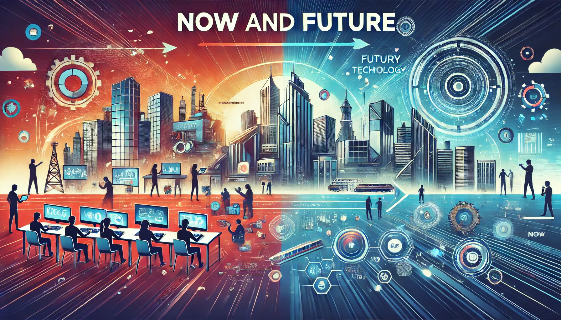 DALL·E-2024-12-20-21.02.18-A-horizontal-banner-depicting-the-theme-of-Now-and-Future-showcasing-a-transition-from-present-day-business-tools-to-futuristic-technology.-The-lef